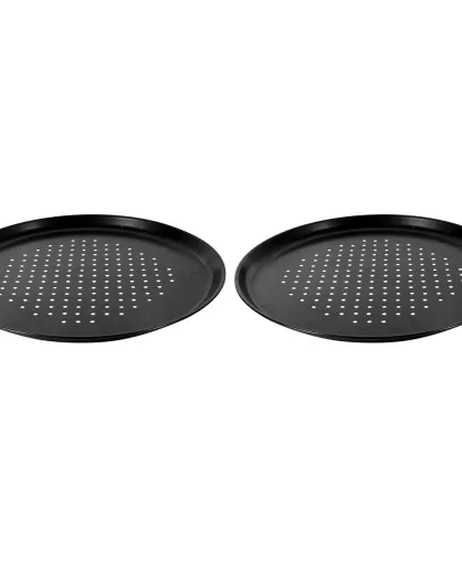 2 schwarze Pizzaformen aus Stahl, 32,5 x 1 cm