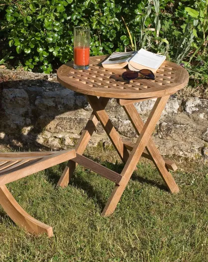 Lustiger runder Picknicktisch aus Teakholz - D.50xH.50 cm