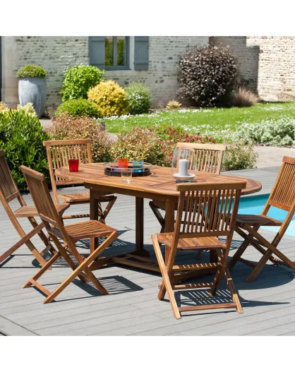 Maeva ausziehbarer ovaler Tisch aus geöltem Teakholz - 120/180x90 cm