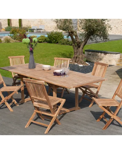 Set 1 ausziehbarer rechteckiger Tisch+6 Stühle Fun Teak - 180/240x100x75 cm