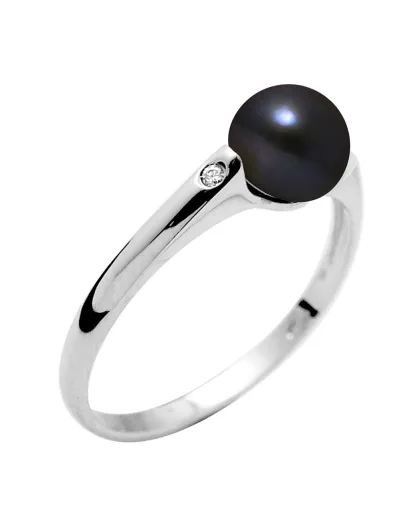 Solitär-Diamantring Weißgold Schwarze Süßwasserperle