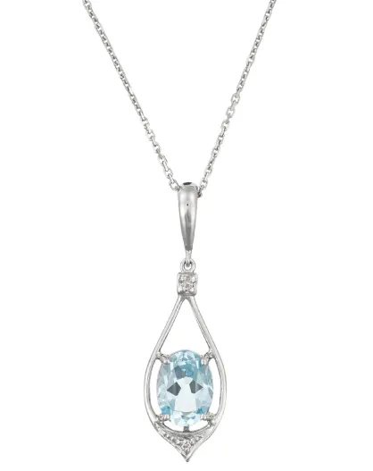 Pendentif & chaîne Brillant Topaze Diamants 0.02 ct & Topaze 1.30 ct or blanc