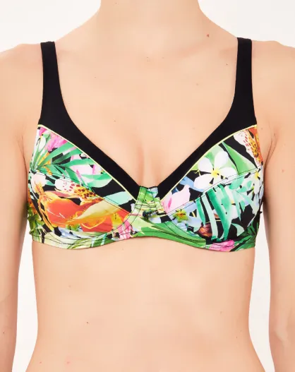 Schwarz/grünes Triangel-Badeanzugoberteil mit Bügeln