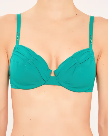 Weicher Badeanzug mit grünem drapiertem Bügel