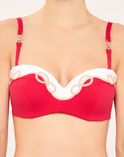 Rotes Badeanzugoberteil mit Muschelstirnband