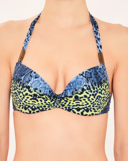 Blaues Triangel-Badeanzugtop mit Muschelmuster