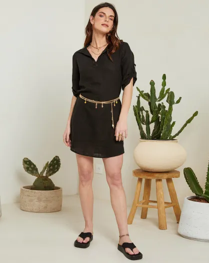 Emy schwarzes Kleid aus 100% Leinen