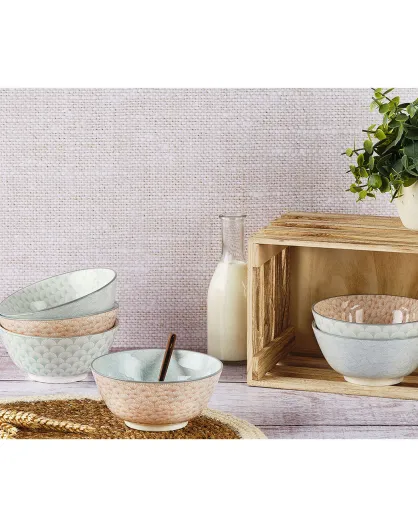 6 pastellfarbene Frühstücksschalen pastellrosa/pastellblau/pastellgrün - D.15 cm