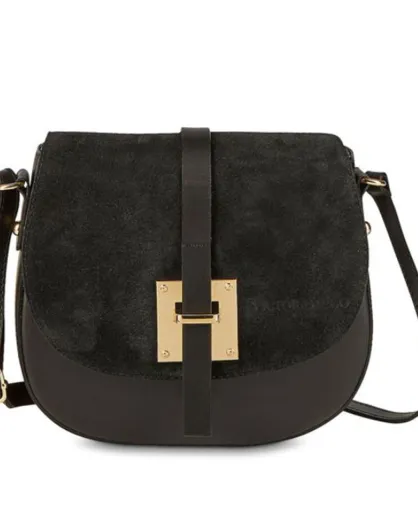 Schultertasche Jara aus Leder und schwarzem Samt - 22x18x6 cm