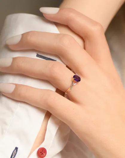 Magischer Amethyst-Ring in Violett, 0,850 Karat Gelbgold