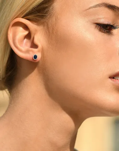 Ohrringe mit 0,13 Karat Diamant und 1,1 Karat runder Weißgold-Saphiren