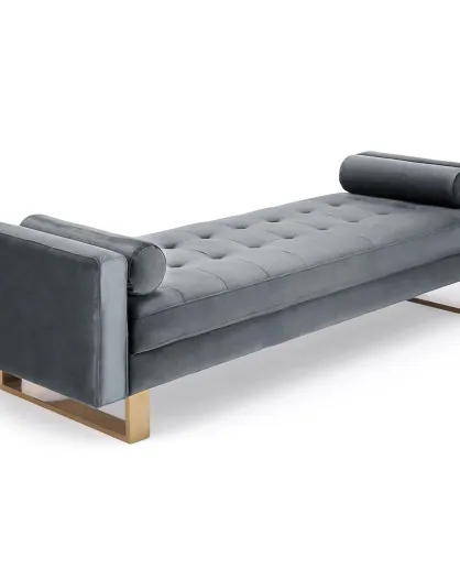 Gepolsterte Sitzbank aus silberfarbenem Samt, 160 x 60 x 60 cm