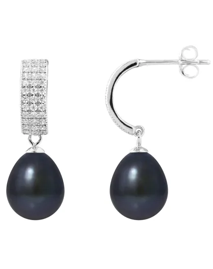 Schwarze Birnen-Ohrringe aus halbkreolischem Silber mit Süßwasser-Zuchtperlen