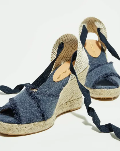 Keilsandalen aus dunklem Denim - 7,5 cm Absatz