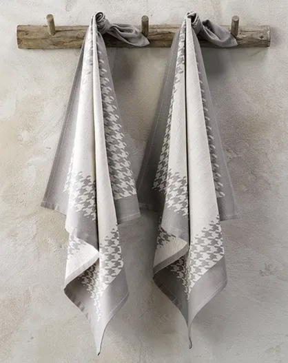 2 Geschirrtücher mit Hahnentrittmuster beige/grau - 66x66 cm