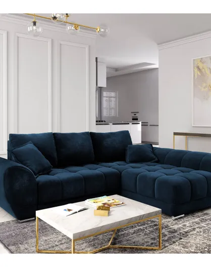 Wandelbares rechtes Ecksofa aus Samt mit königsblauer Cloud-Aufbewahrungsbox — 285 x 192 x 92 cm