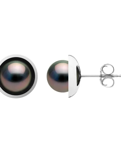 Ohrringe aus Weißgold mit schwarzen runden Tahitiperlen