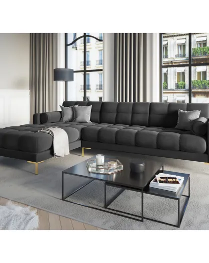 Linkes Ecksofa Bali Velvet dunkelgrau - 293x185x78cm