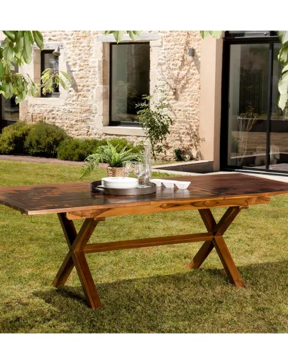 Maeva rechteckiger Tisch mit ausziehbaren Kreuzbeinen aus geöltem Holz - 180/240x100x75 cm