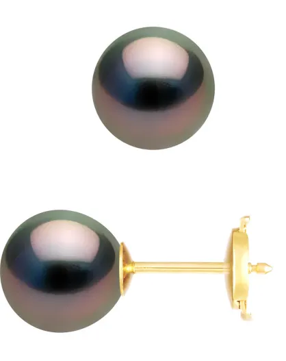 Prestige-Ohrstecker aus Gelbgold und runden Tahitiperlen Ø 8-9 mm