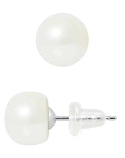 Ohrstecker aus Weißgold mit Süßwasserperlen mit natürlichen weißen Knöpfen Ø 8-9 mm