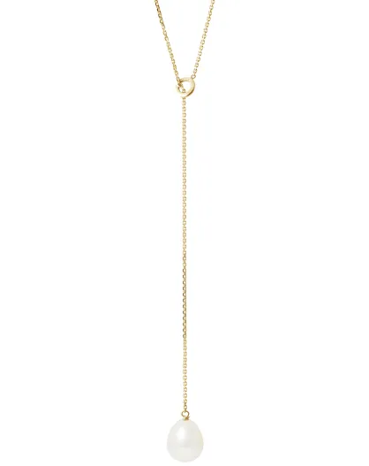 Lasso-Halskette mit Süßwasserperlen aus Gelbgold und natürlicher weißer Birne