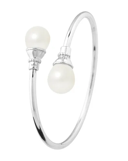Prestige-Armreif aus Rhodiumsilber und natürlichen weißen Birnen-Süßwasserperlen