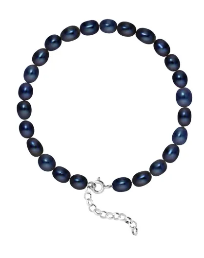 Reihenarmband aus Rhodiumsilber mit Süßwasserperlen und schwarzen Tahiti-Reiskörnern Ø 4-5 mm