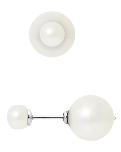 Zweiseitige Ohrringe aus Rhodiumsilber und Süßwasserperlen mit natürlichem weißem Knopf