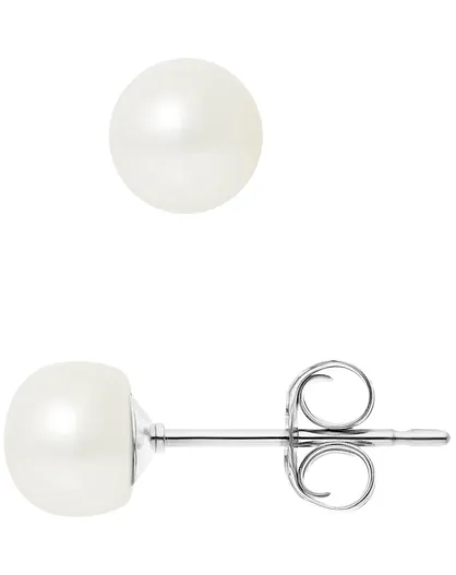 Silberne Ohrstecker mit Süßwasserperlen, naturweiße Knöpfe Ø 6-7 mm