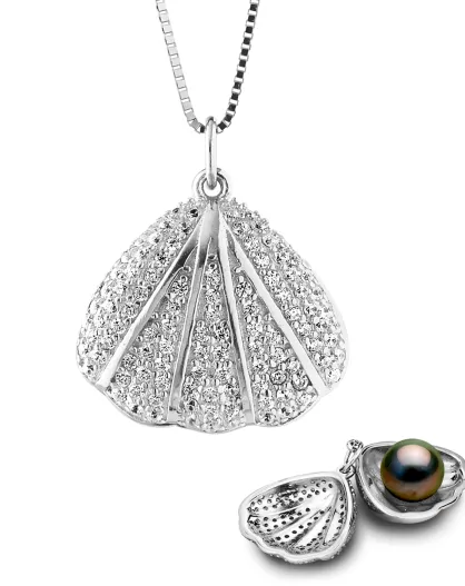 Halskette Mon Trésor Secret aus Rhodiumsilber, Zirkonia und runder Tahitiperle
