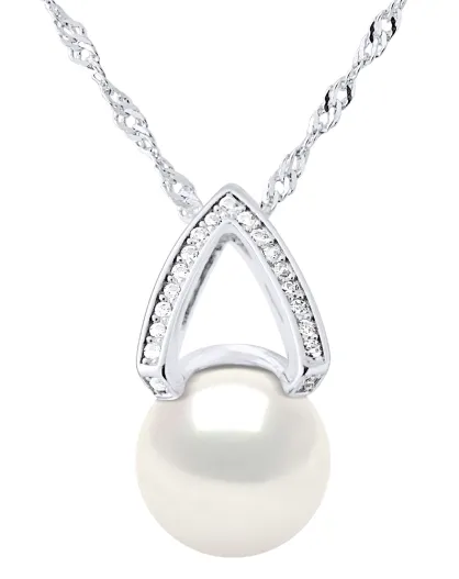 Halskette mit silbernem Bogen, Zirkonia und Süßwasserperle, natürlicher weißer Knopf