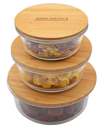 3 luftdichte Glasboxen mit transparentem Bambusdeckel - 40/62/95 cl