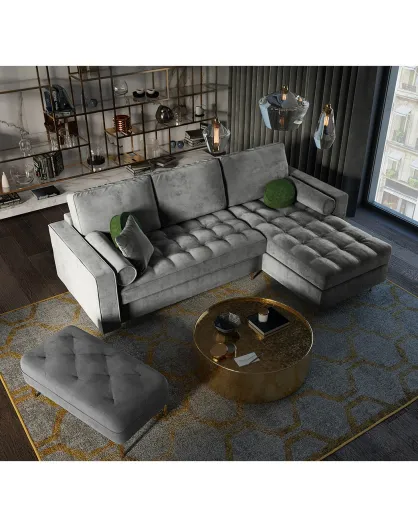 Santo Rechtes Ecksofa aus grauem Samt mit Stauraum, 240 x 175 x 96 cm