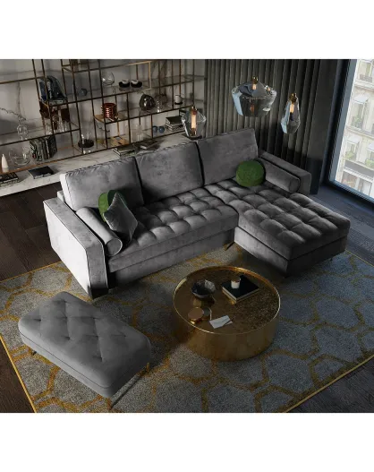 Santo umwandelbares Ecksofa aus Samt für 5 Personen, rechts, mit Stauraum, dunkelgrau - 240x175x96 cm