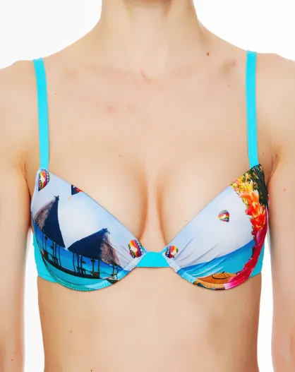 Türkisfarbenes La Tahitienne-Badeanzugoberteil mit Muschel