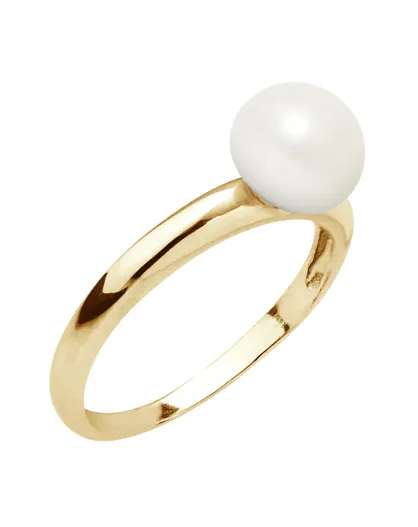 Natürlicher weißer Knopfring aus Gelbgold und Süßwasserperlen