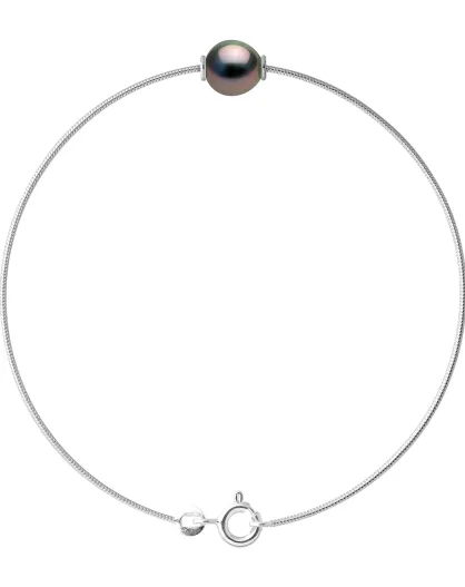 Armband aus Rhodium-Silber und runde Tahiti-Perle