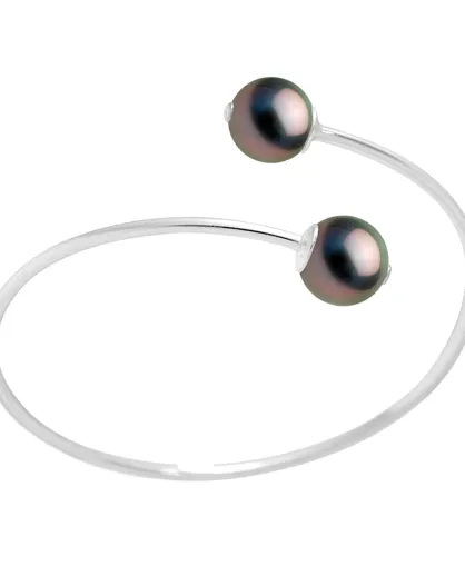 Prestige-Armband Toi & Moi aus rhodiniertem Silber und runden Tahitiperlen