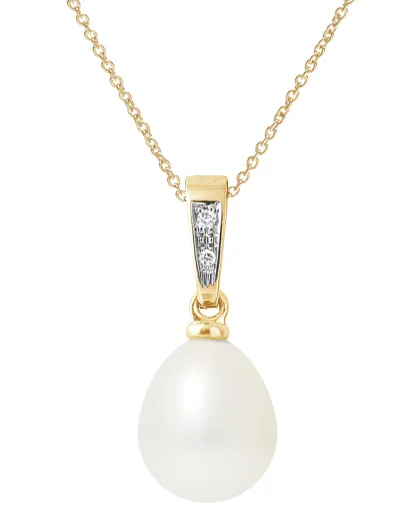 Anhänger aus Gelbgold, 0,02 ct Diamanten und natürliche weiße Birnen-Süßwasserperle