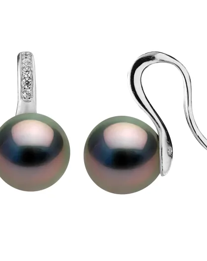 Ohrringe aus Silber, Zirkonia und runden Tahitiperlen