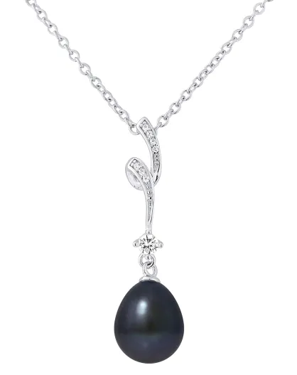 Wirbelhalskette aus Rhodiumsilber, Zirkonia und schwarze Tahiti-Birne, Süßwasserperle
