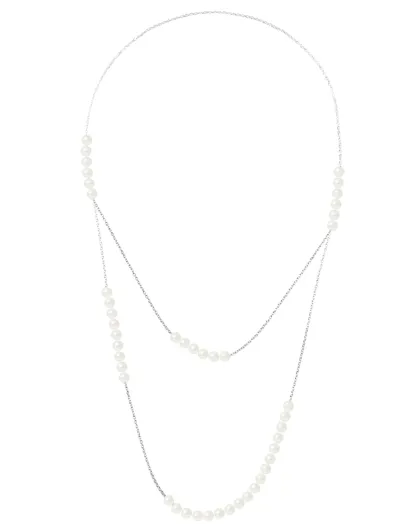 Prestige Doppelhalskette aus Silber und natürlichen weißen runden Süßwasserperlen