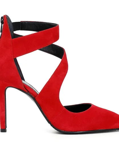 Rote Ledersandalen Melania aus Samt - 9 cm Absatz
