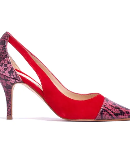 Rote Pumps Claire aus Samt- und Pythonleder — 7,5 cm Absatz