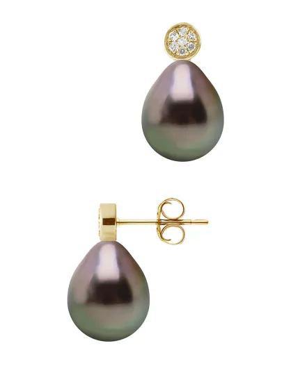 Ohrringe aus Gelbgold, 0,02 ct Diamanten und Tahiti-Birnenperlen