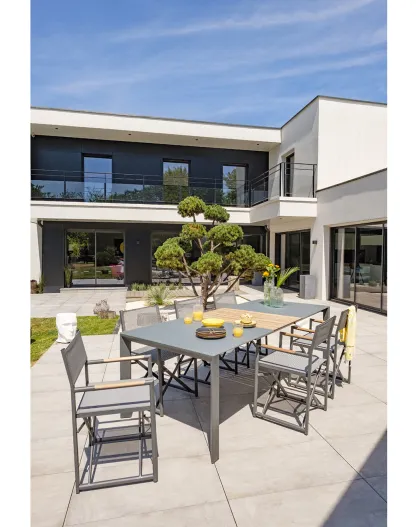 Gartenset Honfleur Table + 6 anthrazitgraue Sessel