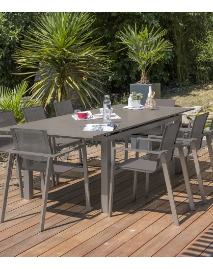 Gartenset Zahara-TB240 Tisch+8 stapelbare Stühle Zahara-FT Taupe