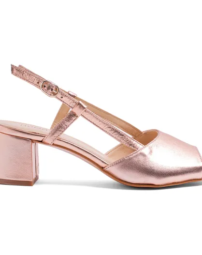 Rosafarbene Ledersandalen Lina in Metallic-Optik - 5,5 cm Absatz
