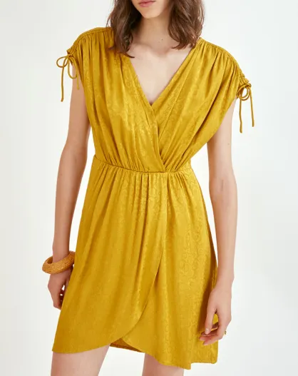 Clarisse Satinkleid mit farblich abgestimmten ockerfarbenen Mustern